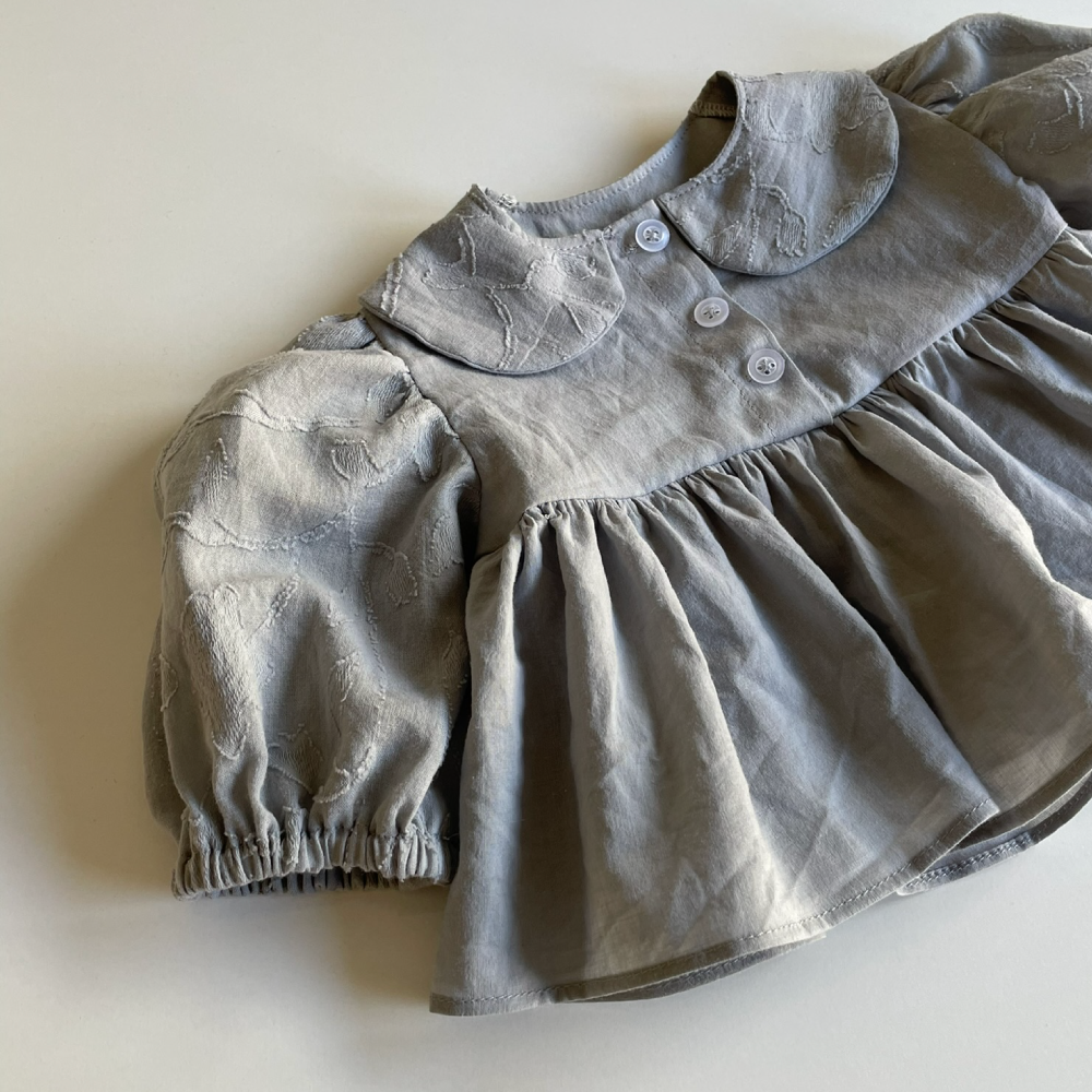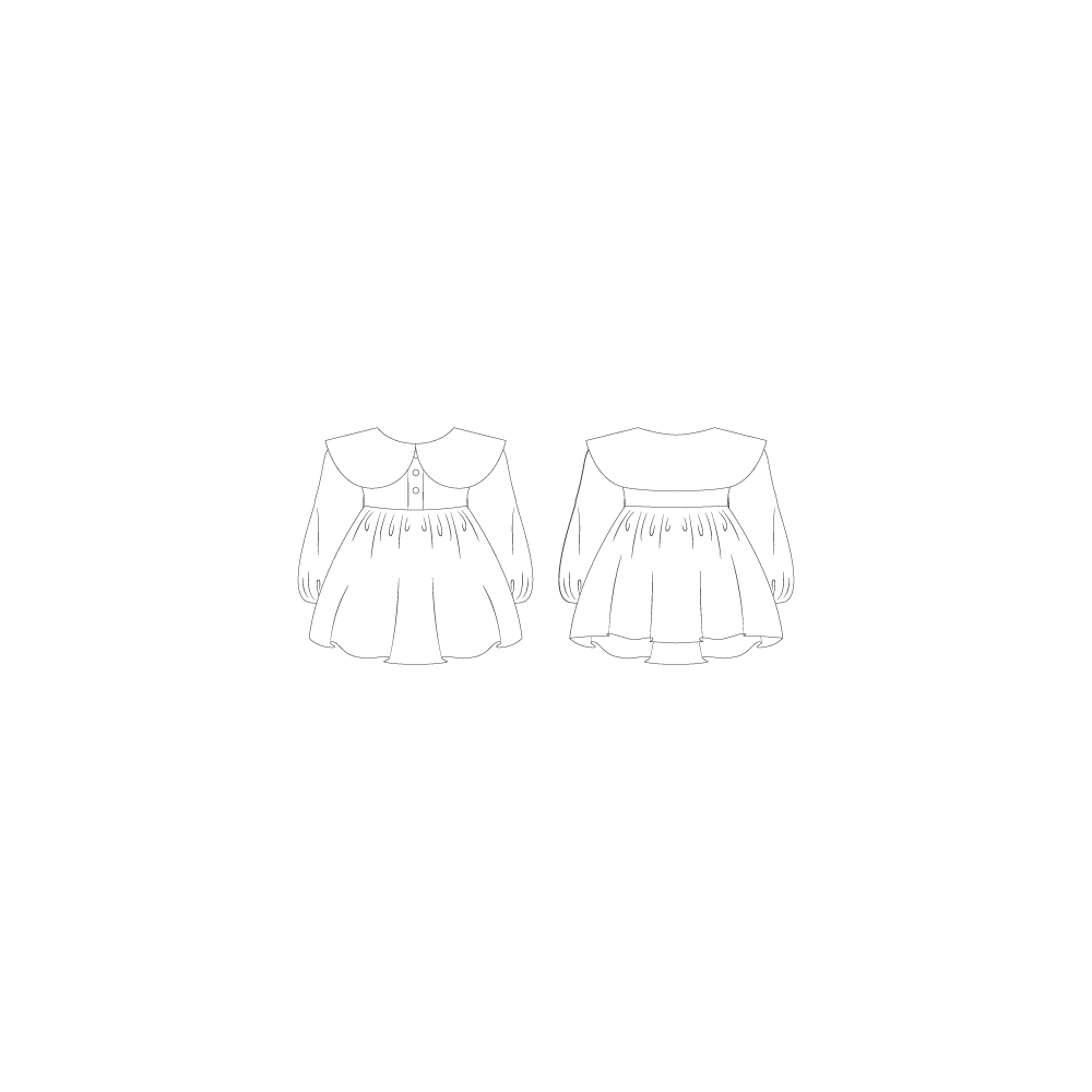 Nela Dress is a dress designed to be stylish and comfortable. The dress is made with a gathered skirt and sleeves. The design is completed with wide Peter Pan collar and button closure at the front.